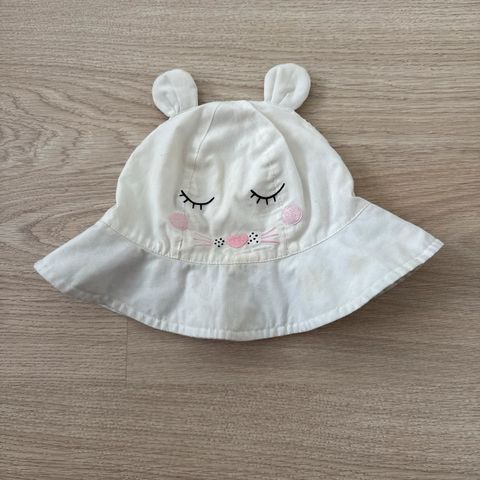 Hennesin söpö valkoinen kesähattu / myssy kokoa 62cm, meillä oli sopiva 1-2kk iässä (56/62). Valmistettu 100% puuvillasta. Ehjä ja tahraton, oikein siisti käytetty kunto, ei moitteita.