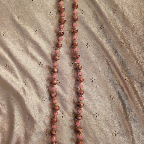 *Viisirivinen helmikaulakoru, jossa eripituiset helmiketjut (5 riviä) laskeutuvat tyylikkäästi puvun decolte-osaan