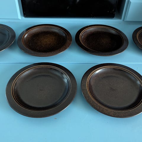 Ehjät, hienossa kunnossa olevat Lumikuru-lautaset. Design Kerttu Nurminen.
