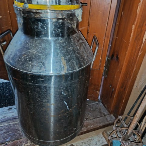 Iso Metallinen maitotonkka harmaa. Soveltuu koriste-esineeksi tai säilytysastiaksi. Kestävä ja perinteinen muotoilu.