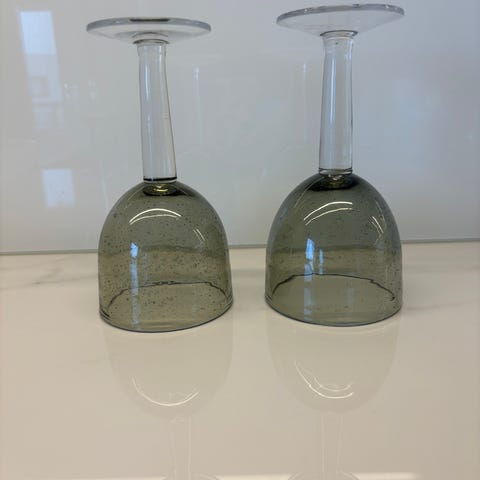 Vähän käytetyt jalalliset lasit kauniilla kuvionnilla, 7 kpl. Korkeus 16 cm.