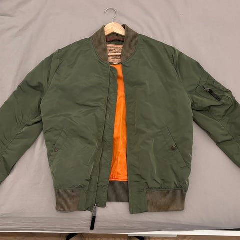 Ma-1 VF 59 long, hieman pidempi kuin normaali malli. 2 Kertaa ollut päällä, ei ollutkaan itselle mieluinen. Osto kuittikin löytyy. Nouto tai postilla.