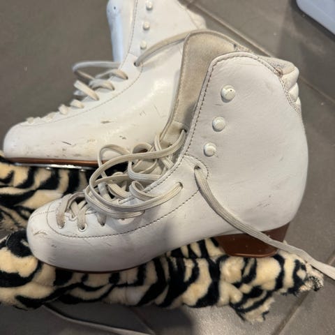 Hyväkuntoiset luistimet, pinnassa jälkiä. Sisämitta 22 cm.