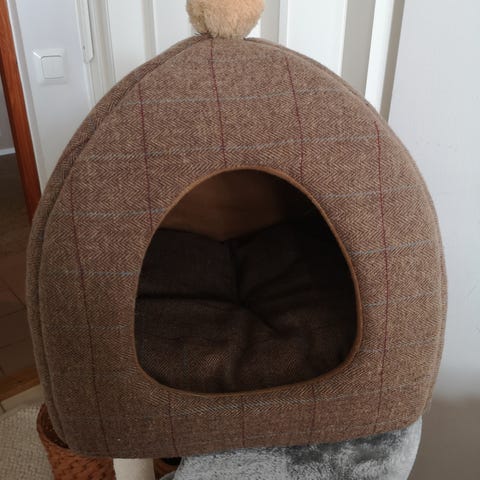 Hyväkuntoinen uutta vastaava kissan makramee peti. Laita laudalle pehmoinen karva ja vaikka seinälle roikkumaan niin kissa viihtyy hyvin ylhäältä päin katsellen.