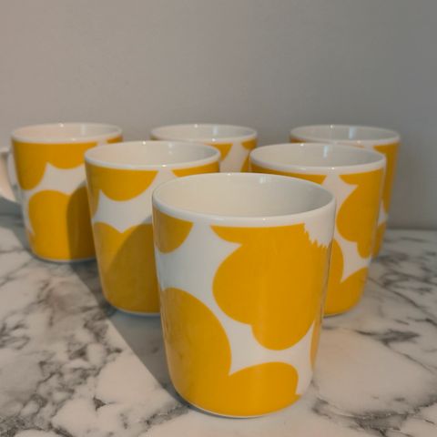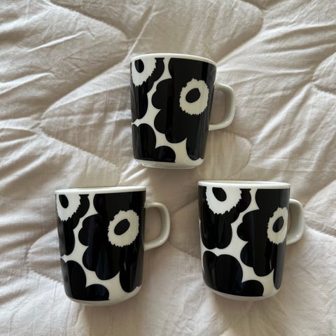 Vain muutaman kerran käytössä olleet 2,5dl Marimekon Suur Unikko kahvimukit.