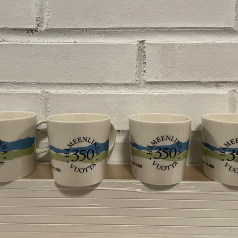 Teema Arabia Hämeenlinna 350 Vuotta mukki on valkoinen keraaminen muki, joka on suunniteltu juhlistamaan Hämeenlinnan 350-vuotisjuhlaa. Muki on valmistettu laadukkaasta keramiikasta ja siinä on värikäs painatus. Sopii hyvin arkipäivän käyttöön tai keräilyesineeksi.