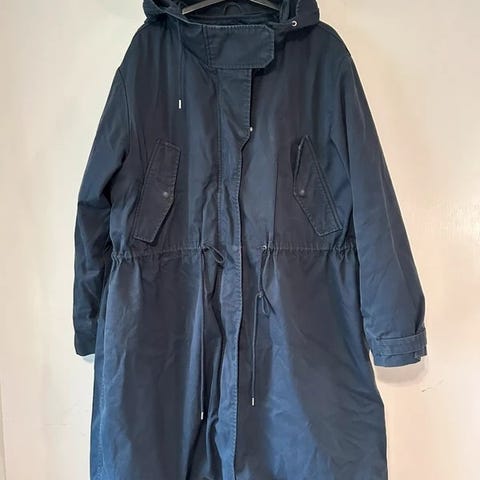 Myydään Marimekko Niine parkatakki. Väri musta, sisävuori mu-va raidallinen. Vettähylkivää materiaalia. Takissa ei ole paksua vuorta, joten soveltuu hyvin loppukevääseen/kesään/alkusyksyyn.
