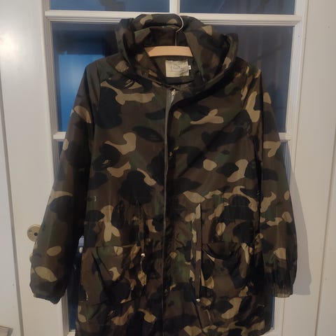 Käytetty hyvä/kohtalainen kunto. Käytön jälkiä löytyy, hupun kuminauhasta elastisuus ajan saatossa hävinnyt. Vyötärön kiristysnauhassa on vielä elastisuus tallessa. Kai-kai mitta noin 54cm. Postit 8,90€ tai toridiili. Koiratalous.