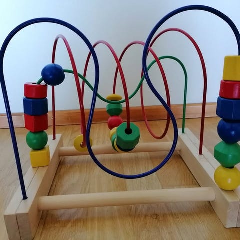 Myydään Ikean isohko helmisokkelo. Leveys 31 cm korkeus n. 28 cm. Käytetty hyvä kunto. Jalakset on jonkin verran epätasapainossa ja toinen jalka jää ilmaan. Ei ole kokeiltu säätää kun ei ole lasten leikkejä haitannut.