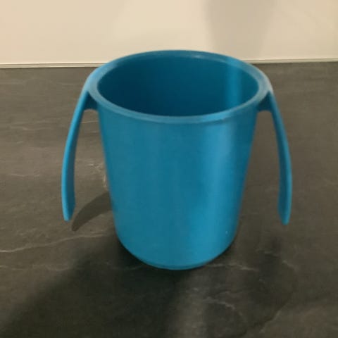 Lasten valkoinen muovimuki. Puhdas ja ehjä. Vain nouto.