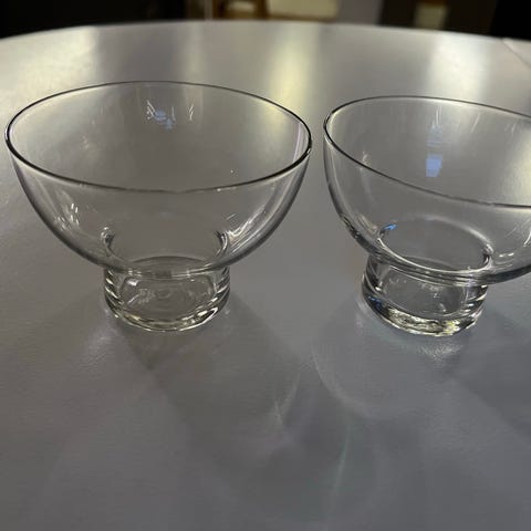 Kunto: hyvä; erittäin vähäistä käytönjälkeä. Kahden lasin jalkalevyn reunassa karheutta mahdollisesti tuotannosta - ei näy päällepäin.