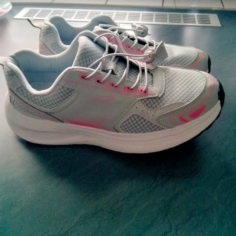 Harmaa /pinkit lenkkarit, joissa pikanarut.Hyväkuntoiset.Kerran tainnut jalassa käydä.Erittäin siistit.