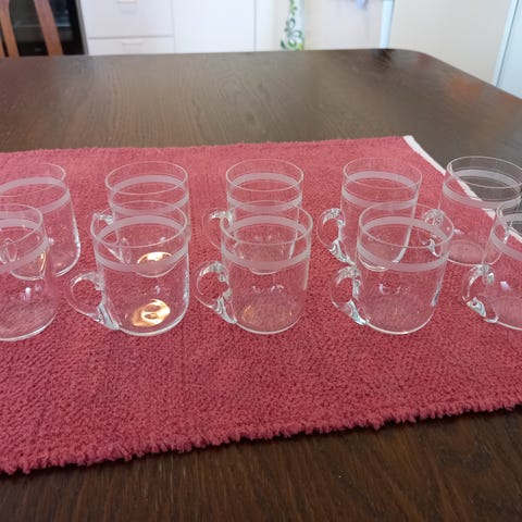 Täysin ehjät Rydberg-lasit, 4 kpl, valmistettu 1900-luvun alkupuolella. Korkeus n 14,5cm ja suuaukko n. 6,5cm. Vain nouto.