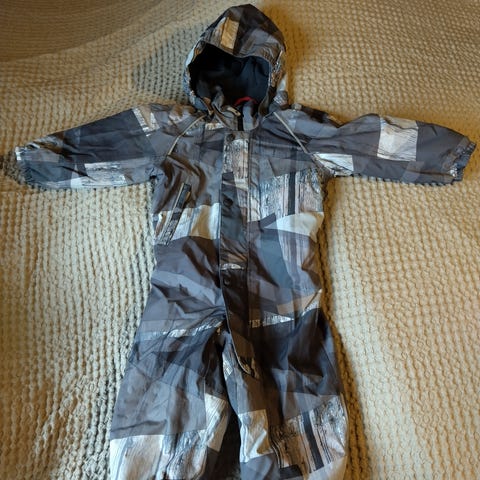 Käytönjälkiä on, pitäisi kuitenkin mennä vielä. Taitaa olla talvihaalari, ehkä menee välikaudellakin. Tuotteessa saattaa olla hieman kulumaa ja tahroja, jotka lähtee pesussa.