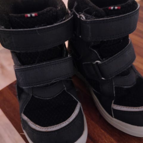 Käytön jälkiä on, mutta kestää vielä käyttöä. Talvikengät ehkä myös välikaudelle. Tuotteessa saattaa olla hieman kulumaa ja tahroja, jotka lähtee pesemällä.