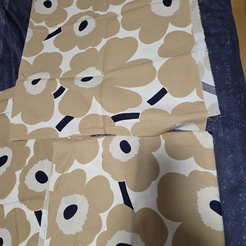 Sivureunat käännetty ja siksakattu. Hieman langanpäät irtoilee