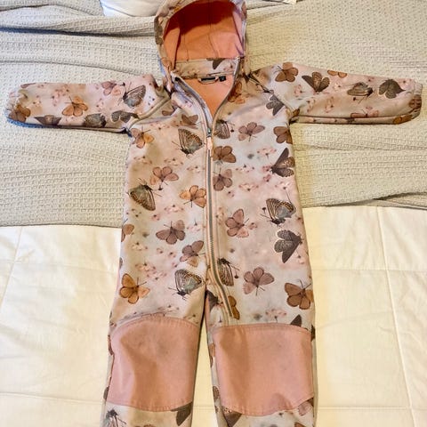 Name It softsell haalari koko 86cm. Hajusteettomalla pesty. Polvissa pientä kulumaa (kuvassa näkyy) ja vetoketjun veto-osan kangas kulunut. Muutoin kunto hyvä. Huppu neppareilla kiinni. Nouto tai postitus.
