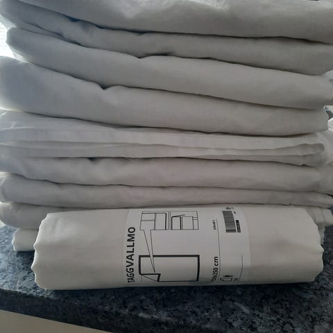 Jyskin lakanat juhliin pöytiä koristamaan tai isommalle yökyläjoukolle. Olleet käytössä häissä pöytäliinoina, pesty hajusteettomalla pesuaineella käytön jälkeen.