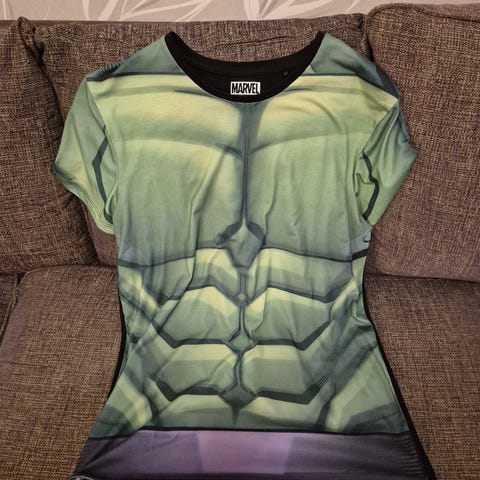 Marvelin t-paita, edessä koko paidan kokoinen kuva Hulkista. Hyvälaatuinen kangas. Koko M, Ostettu Amerikasta. Norrmaalimitoitus.