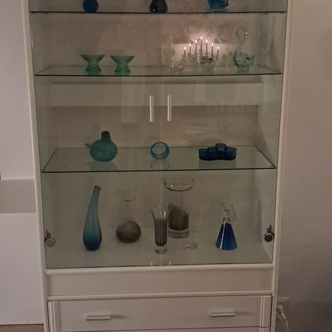 Nätti Hyllykkö. kaapin sisällä on tunnelma valo lamppu.hyllyn ylä,ala ja sivuosat ovat irrallisia toisistaan.itse noutaen.
