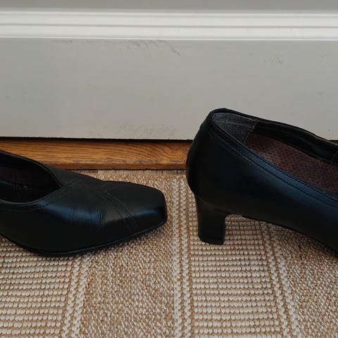 Janita-merkkiset korkokengät. Kokoa 4,5. Kokomuuntotaulukon mukaan vastaa suunnilleen kokoa 37. Valmistettu Suomessa.