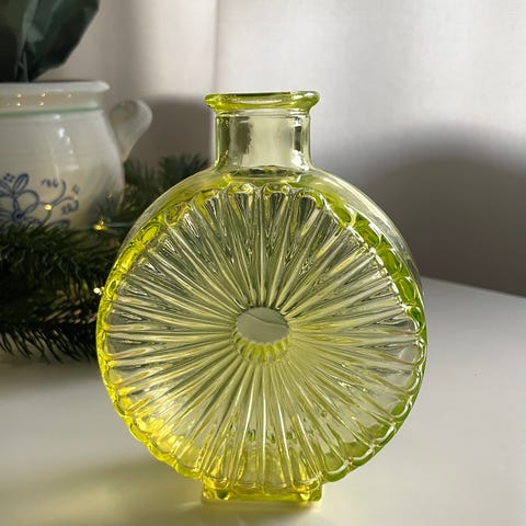 12cm korkea kirkas aurinkopullo. Riihimäen lasi Made in Finland -tarra ehjä ja paikoillaan. Vanha, luultavasti 70-luvulta.
