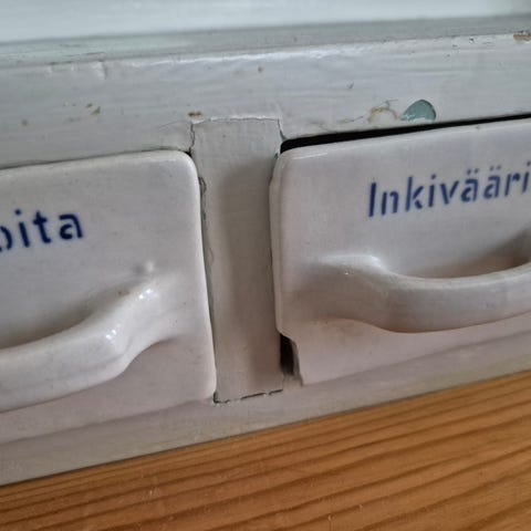 Lokerot kaikki ehjiä, pl. pienet kolhut sokeria-, kaurasuurimoita- ja kahvia- lokeroissa, nämä näkyy kuvissa.