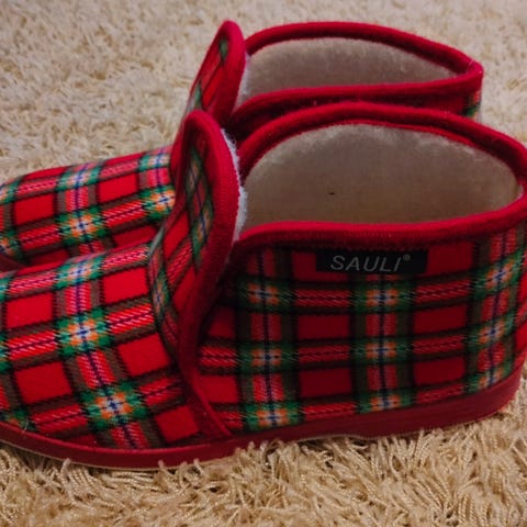 Myytävänä vähän käytetyt uudenveroiset samettiset Shock Absorber tohvelit. Siistikuntoiset ja kenkien pohjissa on luistonesto.