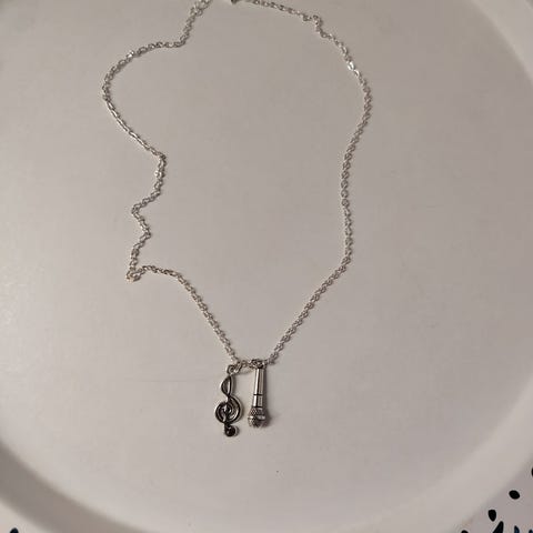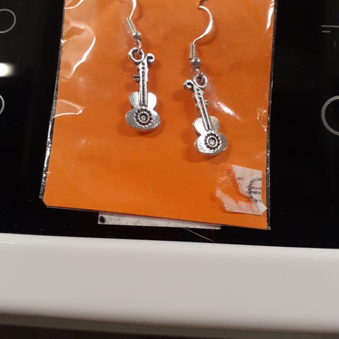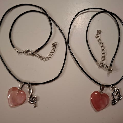 Kaksi identtistä kitara aiheista pitkää cord kaulakorua. Cord narut ovat 80cm pitkät eli tippuvat 40cm kaulasta rintaan. Riipus metallia. Unisex eli sopivat naiselle ja miehelle Käyttämättömät. Kummatkin yhteensä 5e.