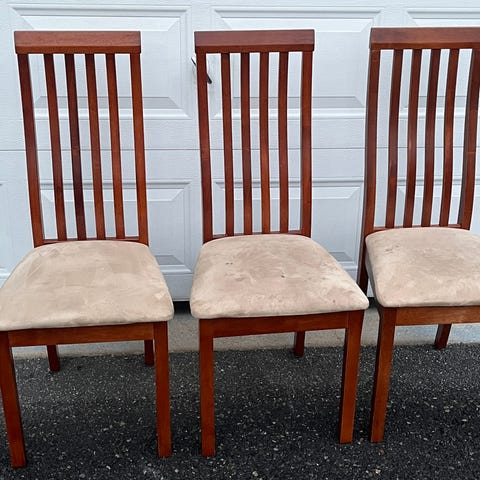 Puiset tuolit, joissa ristipistolla tehty päälliset