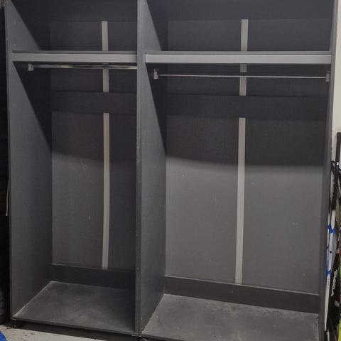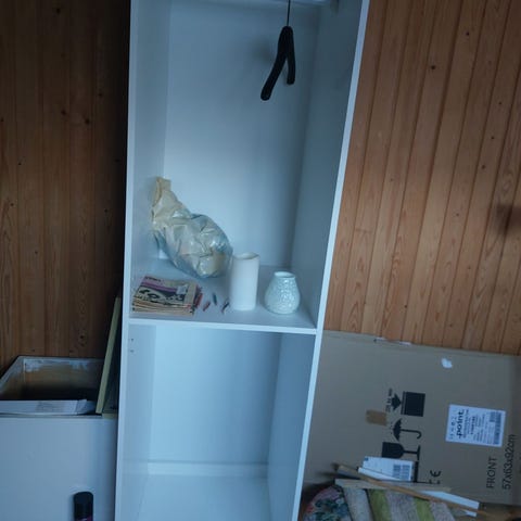 Annetaan vaatekaapissa olleet hyllyt ja U-kannattimet. Hyllyjä 5 kpl ja U-kannattimia 10 kpl.