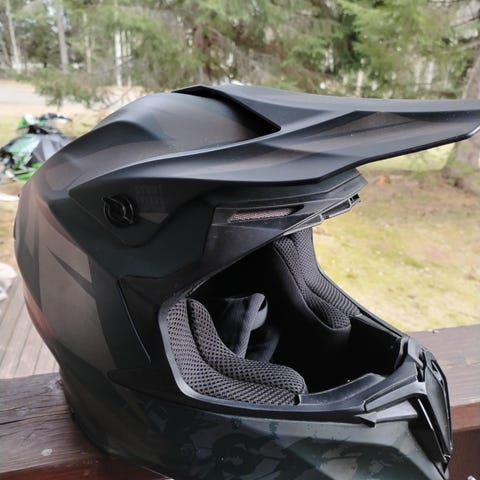 Huippukunnossa oleva Lazer OR3 koko M kypärä. Vastaava: https://moposport.fi/crossikypara-lzr-or-3-rocky-mattamusta-harmaa-m-lazer/