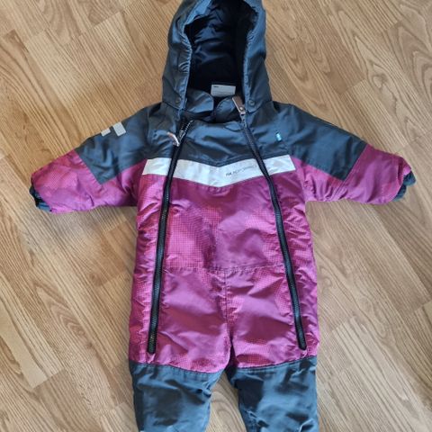Lindberg toppahaalari vauvalle, meillä meni puoli vuotiaaksi asti. Hihoissa ja lahkeissa päällekäännettävät ”sukat”. Koirakoti.