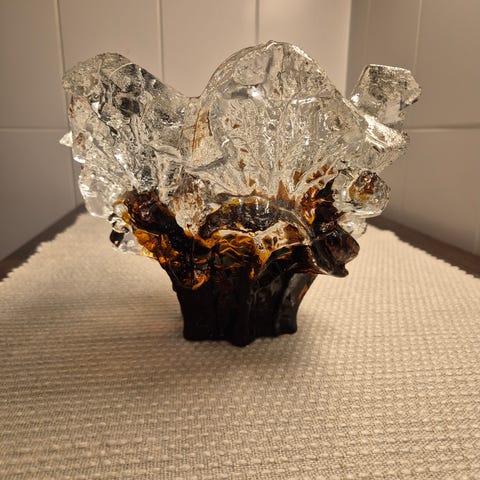 lasikulho koristeellinen läpinäkyvä. Kulho on valmistettu lasista ja siinä on ainutlaatuinen muotoilu, jossa on ruskea keskiosa ja läpinäkyvät reunat. Sopii erinomaisesti tarjoiluun tai sisustuselementiksi.