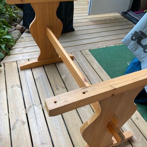 Myydään paketissa olevat pirttikaluston jalat eli pöydän ja kahden penkin jalat. Pakkaus sisältää pelkät päädyt (2 kpl pöydänjalka, 4 kpl penkinjalka ja kiilat). Välipuut puuttuvat eli pelkät päätyjalat. Puuvalmis mänty.