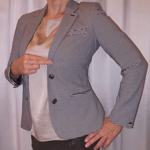 Myydään tummansinivalkoraidallinen Tommy Hilfiger jakku. Jakun kokomerkintä on 34, mutta se sopii hyvin myös 36-kokoiselle.