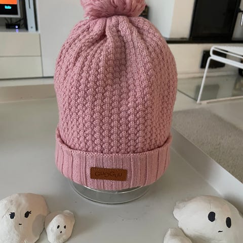 Myydään muutamia kertoja päässä ollut gugguun merinovillapipo koossa xxl. Sopii noin 54-55 cm päähän.