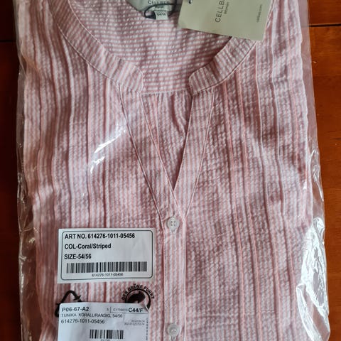Vaaleansininen tunika, hieman pyöristetty helma.
