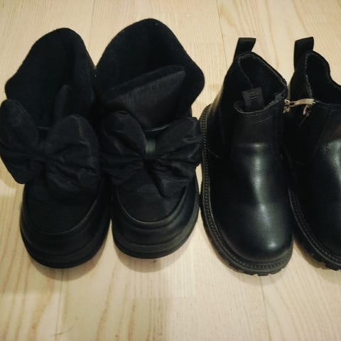 Nauhat ja sivuissa vetoketjut, pitävät pohjat, muutoin hyvässä kunnossa, mutta kärjissä jälkiä.
