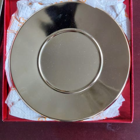 Seita teräslautanen, design Timo Sarpaneva. Halkaisija 25cm.