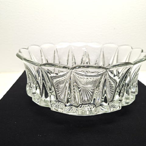 Kirkas Riihimäen lasin Kuningattaren kruunu kulho, halkaisija 19,5cm, korkeus 7,5 cm.