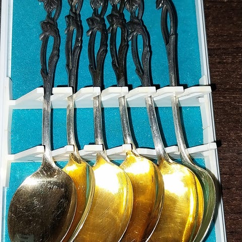 Hopeiset kahvilusikat käytetty ja kaiverrus. h 830.nouto ja käteinen