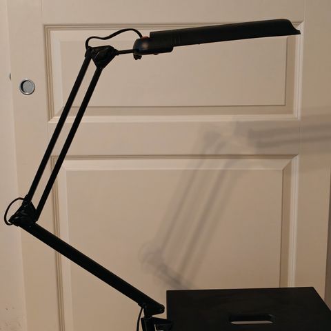 Laadukas, kotimainen valaisin. Korkeutta yms. mahdollista säätää nivelistä. Kiinnitetään työpöydän reunaan.