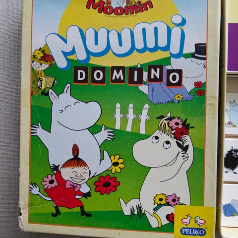 Muumi -aiheinen dominopeli. Erittäin siisti kunto.