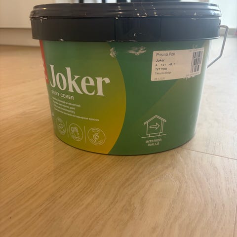 Kaunis hieman vihertävä vaalean sininen liuotteeton, puhdistusta kestävä himmeä maali. Viimeinen myyntipäivä ohitettiin vuosi sitten, mutta maali on säilytetty asiallisesti huoneenlämmössä ja varmasti priimaa edelleen. Hinta kaupassa n. 50 e. Nouto.