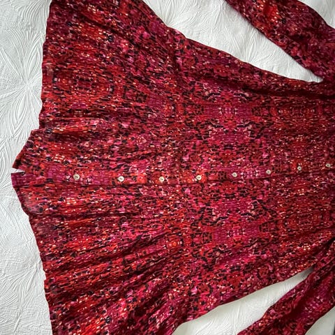 Kaunis pitkähihainen samettimekko. Pituus olkapäästä mitattuna 100 cm.