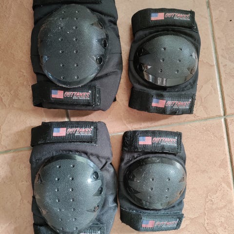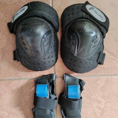 Erinomaisessa kunnossa olevat K2 merkkiset suojavarusteet myydään settinä. Sisältää ranne-, kyynärpää- ja polvisuojat.