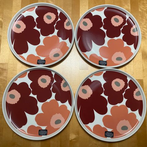Marimekko Oiva Mini Unikko Lautanen 20 cm. Kelta-oranssi-puna-vihreä-valkoinen.