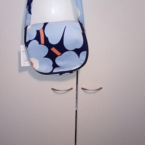 Marimekon Neat Crossbody L, käyttämätön. Ryppyinen säilytyksen jäljiltä. Koko 55x48x15cm. Sisäpuolella tasku, laukun voi taitella taskuun säilytystä varten.