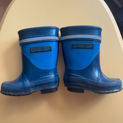 Children’s rubber boots Nokian. Size 22, insole 14cm. Bought new and used by one child. One shoe has a small white stain (circled in the pictures). Otherwise clean, intact and in good condition. Non-smoking household.